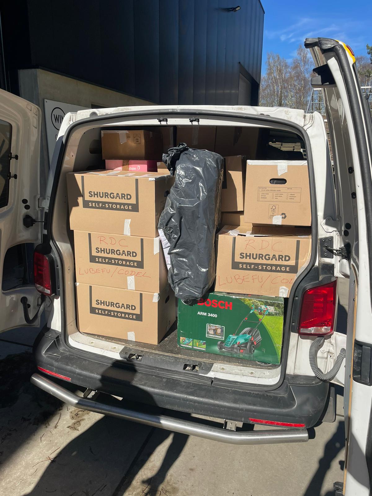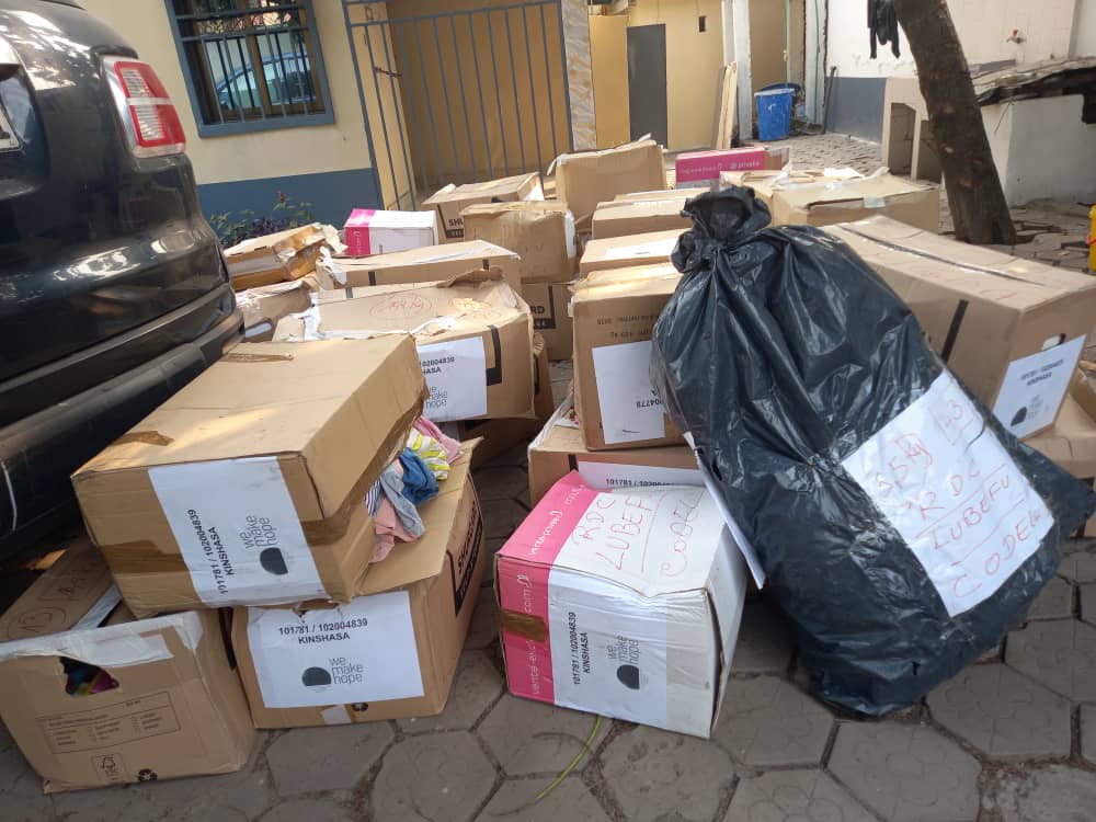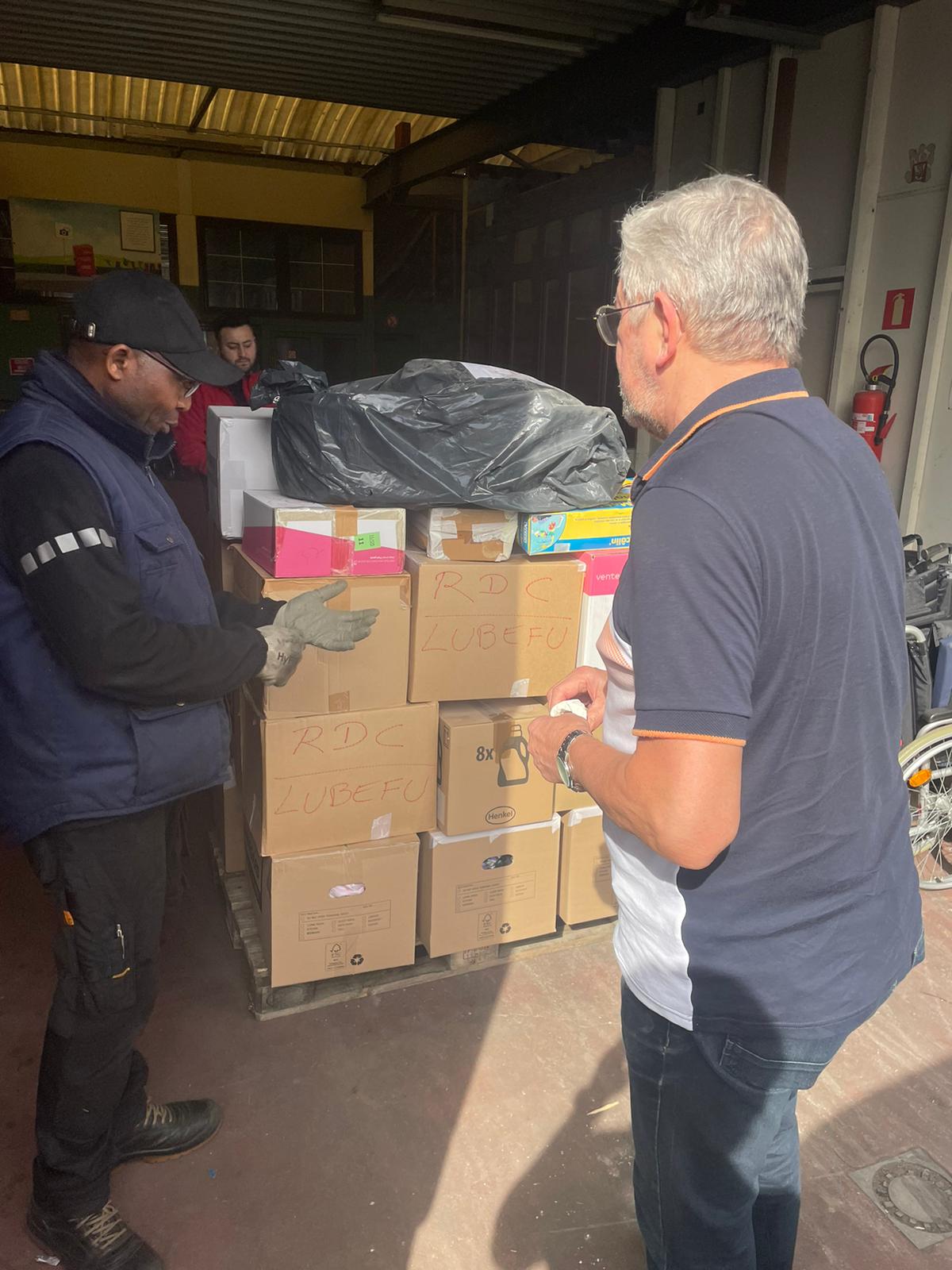 Ci-dessous, les photos de l’arrivée du matériel chez le transporteur, aussi bien à « We Make Hope » (anciennement Wereld Missie Hulp) à Boechout, ainsi qu’à Kinshasa, RDC.