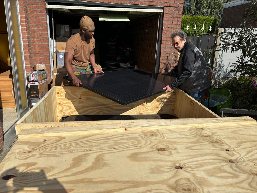 Maintenant nous avons acheté, sécurisé et emballé le matériel pour l’électrification ainsi que les panneaux photovoltaïques qui sera primordial avant d’accueillir les enfants.